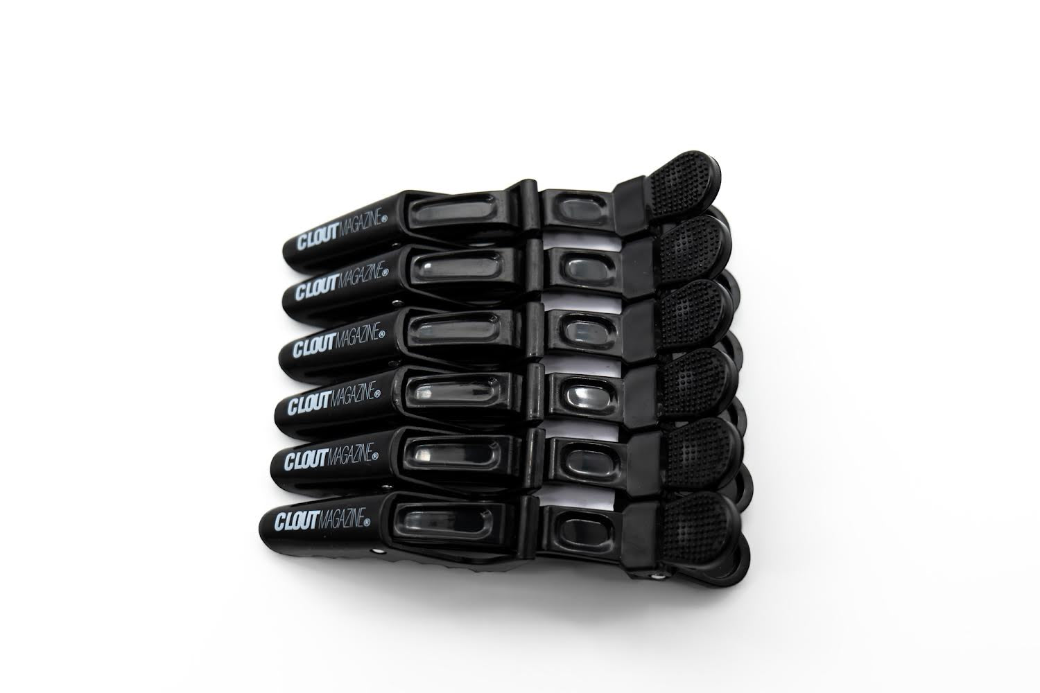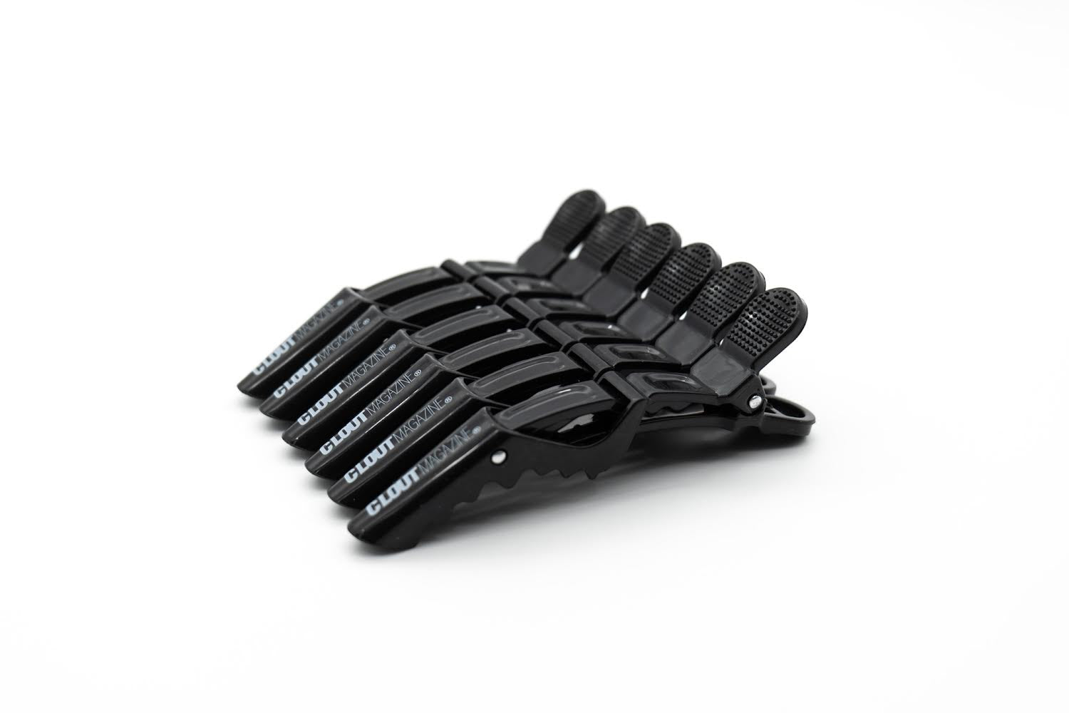 La pinza para el cabello de cocodrilo CLOUT MAGAZINE Hot Salon está hecha de plástico de alta calidad y viene en paquetes de 5, solo disponibles en negro en este momento.