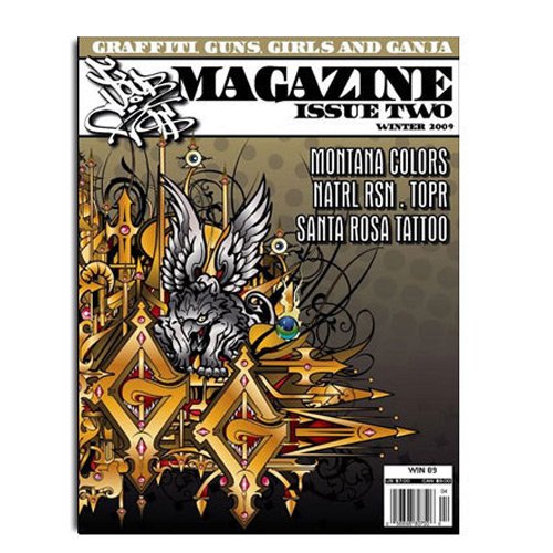 60 pages, 100% color- Issue Two of Four Gs magazine features cover art by NATRL RSN GL. Also features 14 of California's finest graffiti crews: AWR, CBS, HTK, ICP, MSK, MTA, NR, RSN, TBK, TFL, TITS, TKO, UM & WAI. A feature on the creators of spray paint for grafitti arts, Montana Colors, an exculsive interview with San Francisco rapper TOPR. 4 profiles on machine guns, an article about firearm supressors, an in depth article with Santa Rosa Tattoo, 6 California girl profiles and 8 ganja strain profiles, including photos and information, and an article on Unleash micronutrient.